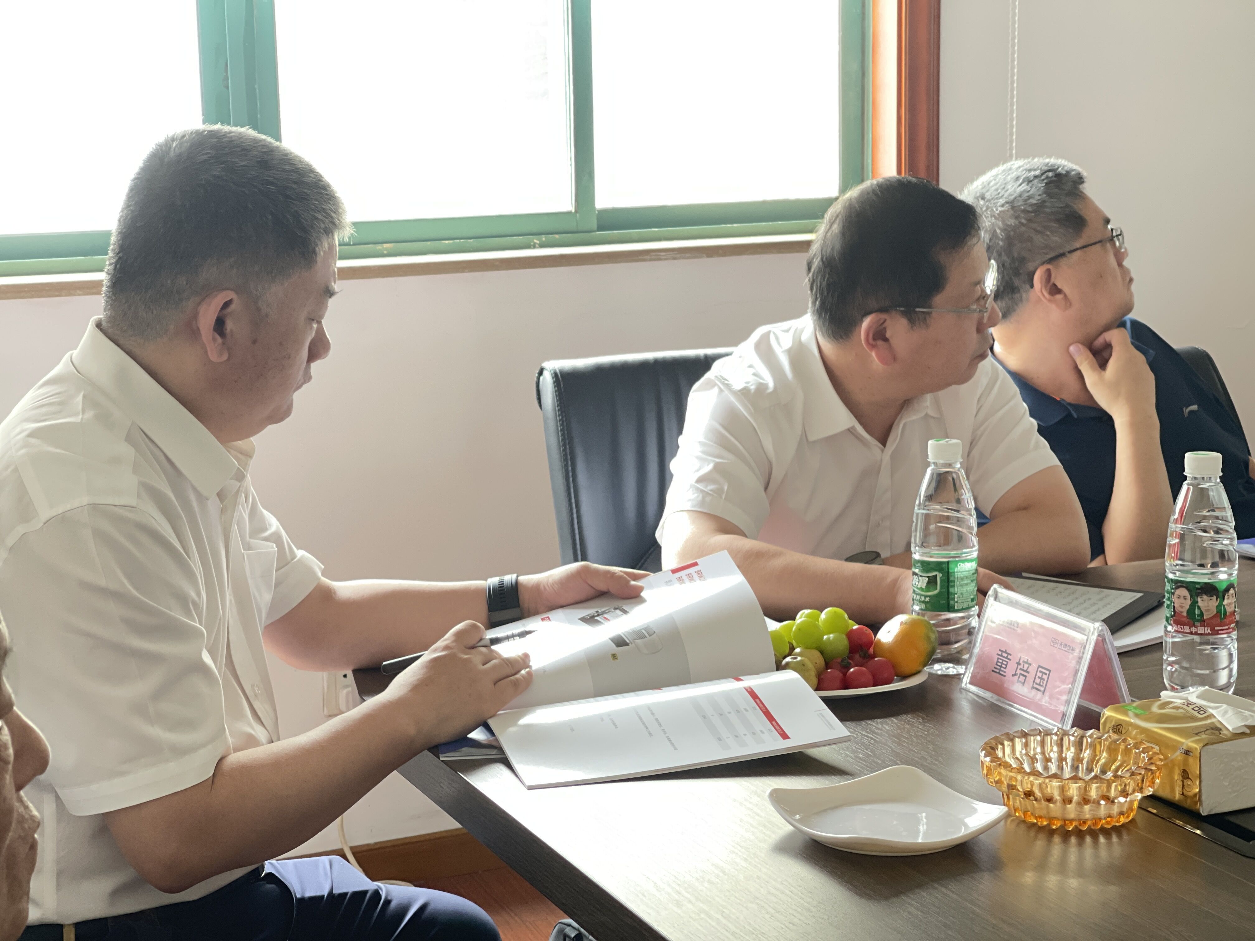 ▲山能物資公司總經理童培國與張壽炎董事長就產業發展前景進行深入討論