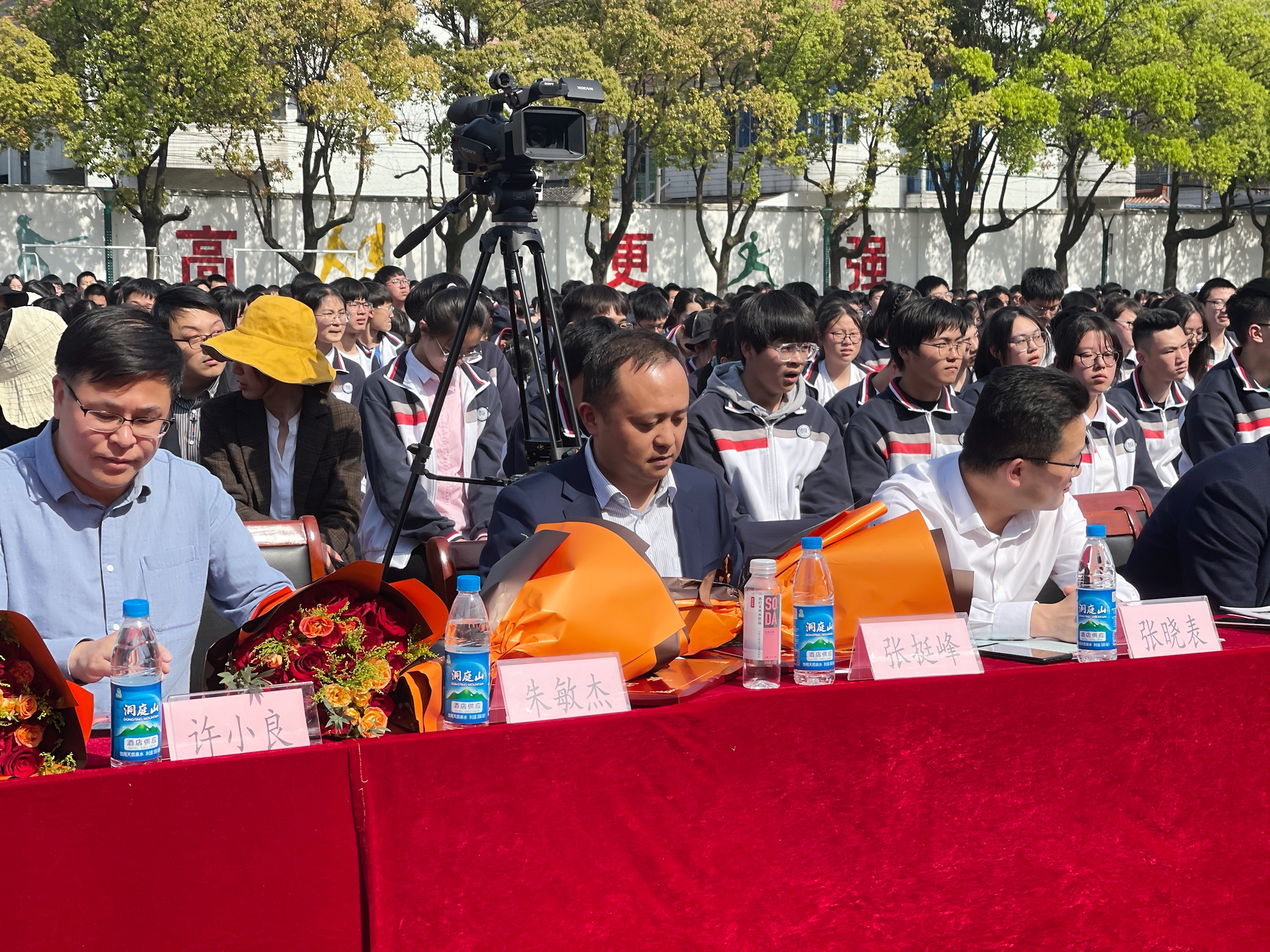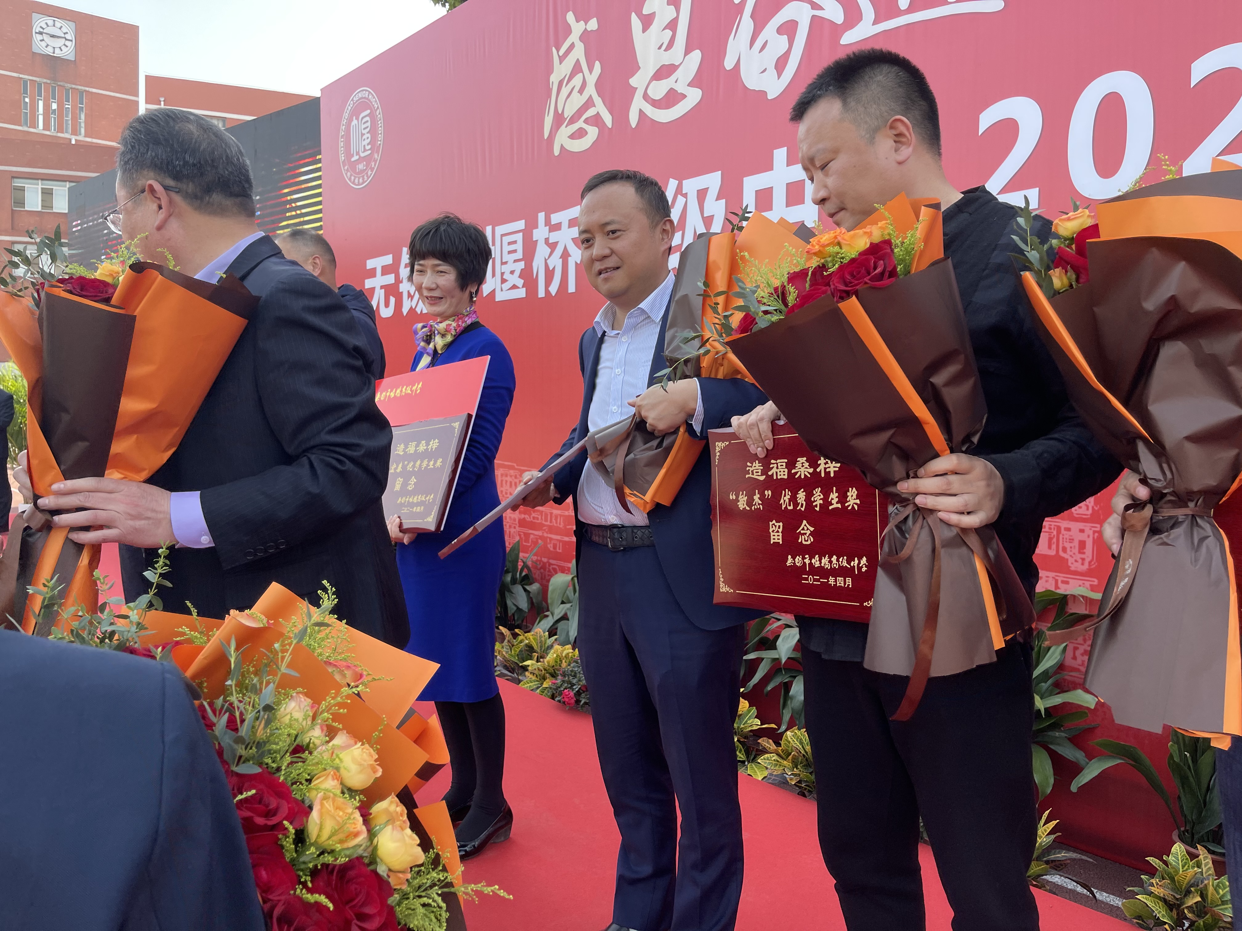 無錫市堰橋高級中學副校長陳登峰先生宣布表彰會開始,胡建秋校長致辭,并向企業家頒發獎勵基金捐贈儀式,留念牌、基金牌、鮮花。